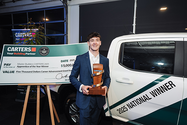 The results are in! The 2025 Master Builders CARTERS Apprentice of the Year has been crowned - shining a spotlight on the outstanding skill, professionalism, and leadership shaping the future of our industry.