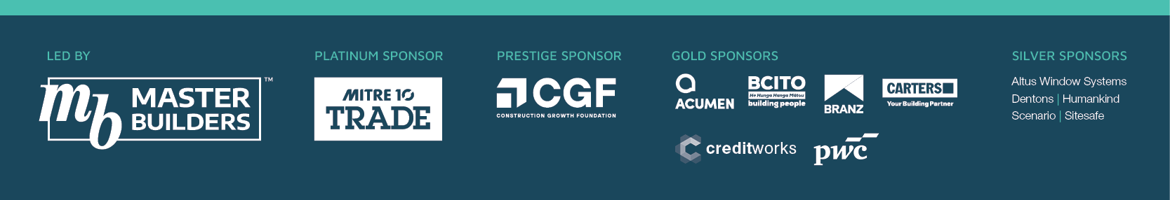 | Constructive would not be possible without the support of our sponsors. We especially acknowledge our Platinum Sponsor, Mitre 10 New Zealand, and our Prestige Sponsor, Construction Growth Foundation: |